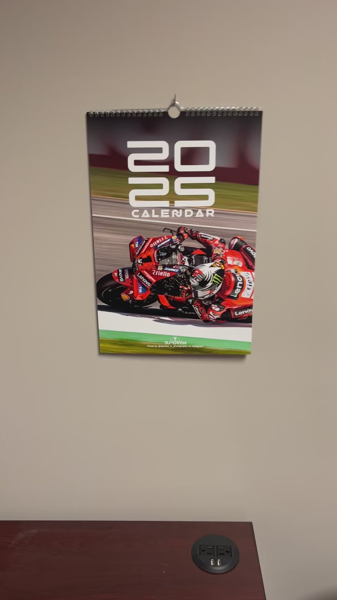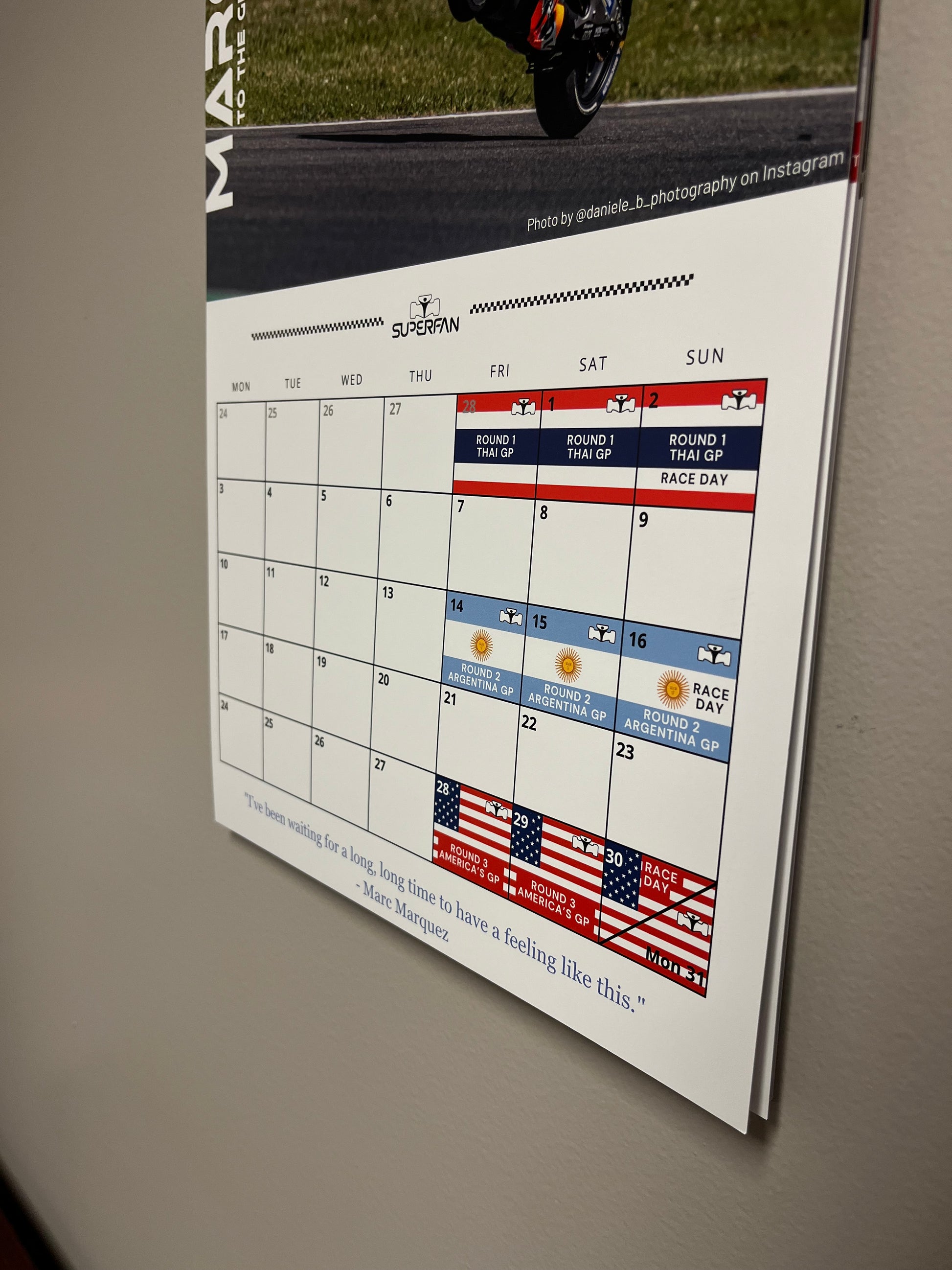 Transform your space into MotoGP headquarters with this premium 12-month wall calendar featuring: