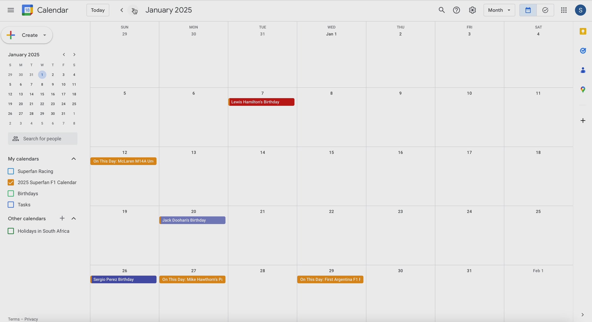 All F1 driver birthdays.